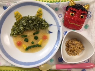 今日は節分。パパが鬼のお面を被り、こうちゃんを抱っこした私が豆をぶつけました。鬼は外、福はうち!とやりました。こうちゃんは泣かず、鬼さんは外へ逃げて行きました。ぶつけたのは少しずつ豆が小包装されているタイプのもの。投げた後の回収も楽だし、綺麗なまま食べられるのでおススメです!