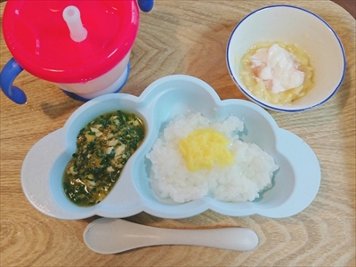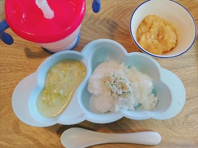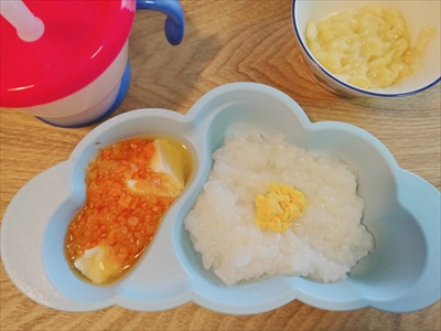 みじん切りにして玉ねぎとゆで汁少しと赤ちゃん用のクリームソースの素を合わせてレンジで加熱して完成です。