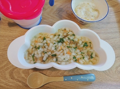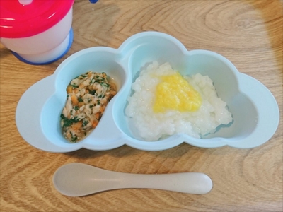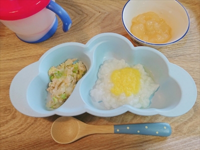 ベビーフードのフルーツが甘くて美味しいようで、たくさん食べていました。