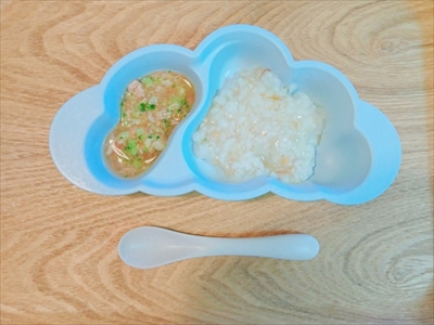 そういえば、前に栄養士さんから食材の固さをかえると食べてくれるという話を思いだし、固めのお粥を炊いてみました。