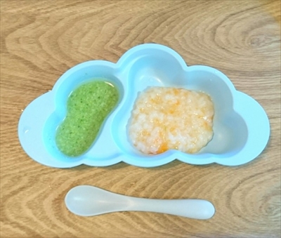 ニンジンとカボチャペーストは完食しましたが、お粥は1/3残してしまいました。飽きたよね、同じ味ばかりで。