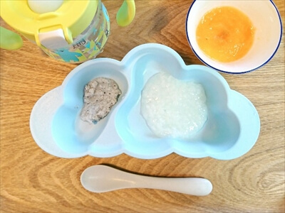 機嫌が悪くなるとサツマイモ粥も食べてくれなくなりました。