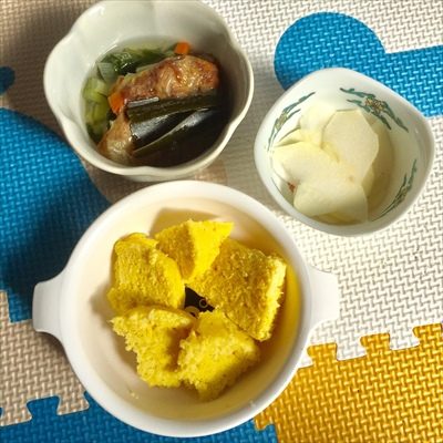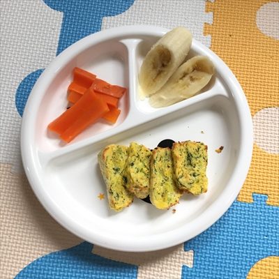 晩ご飯は、離乳食用のプレートではなく、ふつうのお皿でワンディッシュ。