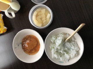 母にお粥を作ることを頼んでいたのですが、母はお粥をごはんから作っていたので、生米から作る私のお粥とは粘り気やらお米の固さが違った模様。