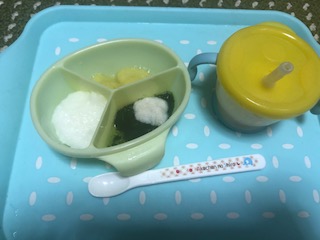 →パン粥の作り方を間違え、液体状になり食べ応えがなかったからか途中で嫌がり終了
