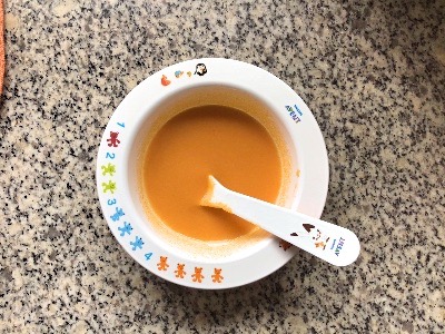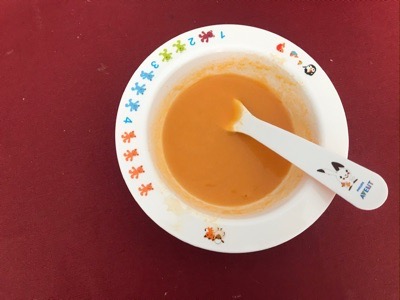 昨日の離乳食の残りです。電子レンジで少し温めてからあげました。なんと今日は、盛り付けた分を全て食べました!野菜のピュレは久しぶりの完食です。とはいえ、最近は野菜のピュレをあまり食べないので、盛り付ける量も以前に比べてだいぶ少ないのですが…。おかわりもあげようとしましたが、おかわりは拒否されました。