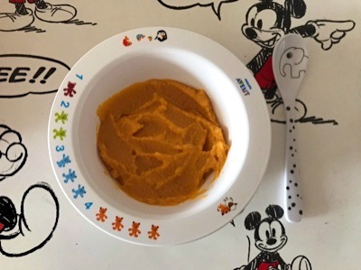 トマトは種をとりのぞきました。材料を全て調理ロボットに入れてスイッチオン。30分後にピュレの完成です。ペピートは半分ほど食べました。ここ最近は食べる量が少ないので、その量では足りないのではないかと思うのですが、とりあえずその場では満足するようで特にミルクを欲しがったりはしません。