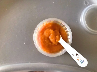 ペピートの離乳食を作る際に、歯応えを残したりタンパク質を加えたりし始めてから、嫌がることもあって食べる量が少なくなったので、今日はシンプルににんじんと少しのオリーブオイルだけで滑らかなピュレを作りました。