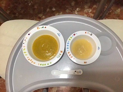 野菜のピュレもバナナも全てきれいに食べました。