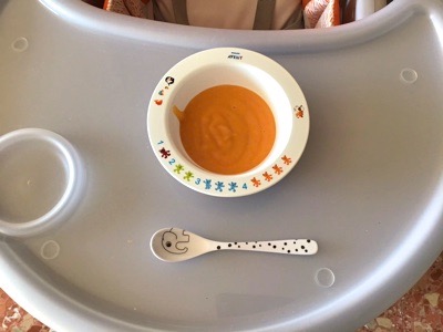 ぺピートは野菜のピューレもデザートの果物も完食しました。