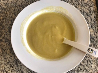 以前、離乳食を作るために購入しておいた仔牛の肉を冷凍してあったので、それを解凍してつくりました。材料を全て調理ロボットに入れてスタートします。40分後に完成しました。記載してある材料の分量は、ロボットのレシピに書かれている量なのですが、実際に作るときには多少多かったり少なかったりします。レシピには、例えば「玉ねぎ1個」とか「ジャガイモ2個」ではなくグラム表記なので、野菜が中途半端に残ってしまう時もあります。そんな時には少し多めに入れたり、逆に少なめになってしまうこともありますが、それほど仕上がりに影響はありません。