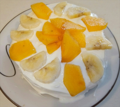 4.食パン→ヨーグルト→果物で重ね、最後に果物を飾り付ける。
