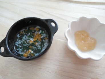 ちなみに、今回もわかめは大人の味噌汁から取り分けたものを使いました。汁は切っているものの、ほんのーーりみそ味がしていたので、いつものごはんより味がついていて美味しかったのかもしれません。少しずつ調味できる月齢ですが、あえて調味しなくても十分いけそうです。 まあ、そのうち保育園に通ったりを考えると、そろそろ調味料を使うことも考えないとなあ・・・。Aちゃんは今のところ、味付けしていなくても全然食べてくれているので、忘れがちになりますが(;^ω^)