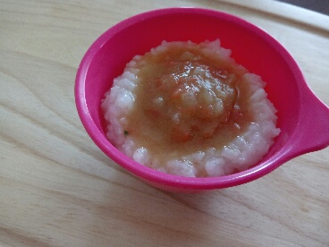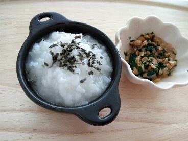 今日は食材がなかったのもあり、ストックしている海苔を使いました。あんまり多いとのどに貼りついたりして危ないので、細かく刻んで少量をおかゆに混ぜることにしています。 ちなみに今回使ったのは、飾りに乗せるようなもみのりです。すでにほそ~く切られているので、あとはキッチンバサミで小さく切るだけ!簡単!!