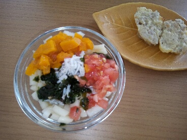 朝は作れるなら味噌汁をつくって野菜などは取り分け、昼はトマトなど簡単なもの、夜は朝の残りの味噌汁の具材に牛乳を少量足してミルク味噌汁に。てな感じが定番化してきました。