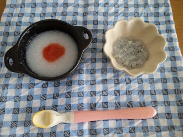 一応別皿に用意したものの、ボソボソでとろみつけるのが面倒だったのでおかゆに混ぜて食べさせました。