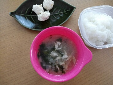 ひじき少量をみずに戻し、電子レンジでチンしてやわらかくして刻んでおく。
