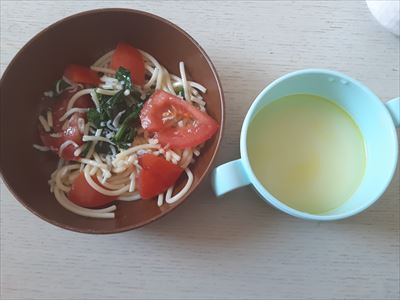 ※大人用の冷やしパスタには、ポン酢としょうが、にんにくを入れています。