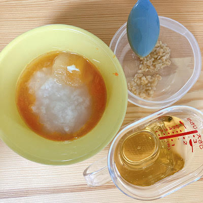 今回は高野豆腐3g、野菜(人参+大根)10gで作りました