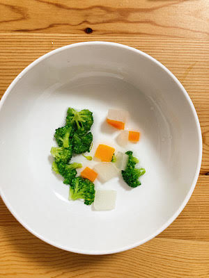 ここ最近、野菜スープ、お粥、ブロッコリーのメニューでマンネリぎみだったのでメニューにバリエーションを求めてみました
