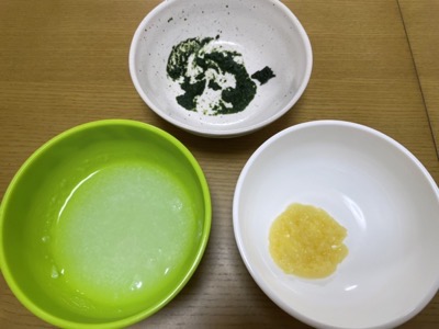 今日は10倍粥をスプーン小さじ7杯、そうめん小さじ1杯と新しくほうれん草のホワイトソース和えを作ってあげてみました!