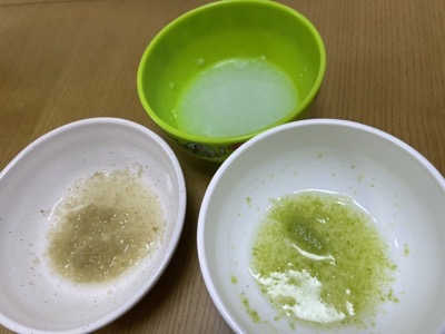 今日も前回からナスを少し増やして10倍粥をスプーン小さじ6杯とナスを小さじ4杯、はくさいを小さじ2杯をあげてみました!