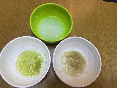 今日は前回と同じく10倍粥をスプーン小さじ6杯とナスを小さじ2杯、はくさいを小さじ2杯をあげてみました!