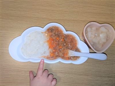 娘に食べさせようとした瞬間、手で払いのけられカレーライスが床に落ちてしまい