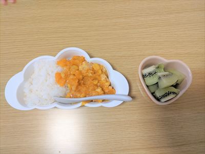 ママがキウイをあげると、おとなしく速やかに完食。(笑)