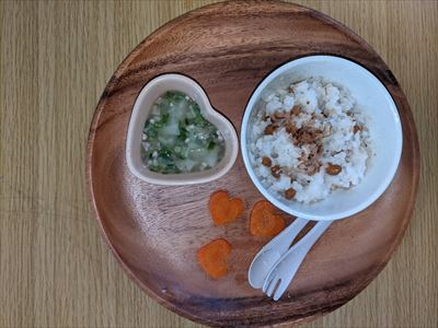 無事に完食してくれました。納豆ごはんを嫌がらずバクバク食べてくれて安心です。