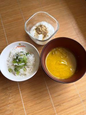 味噌汁は口に運ぶもベーっと出して全然食べませんでした。味噌汁さえ飲んでくれたら、たんぱく質と食物繊維を摂取できて栄養的に安心するのになあ。