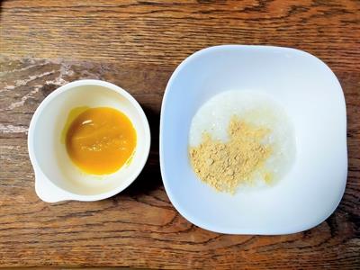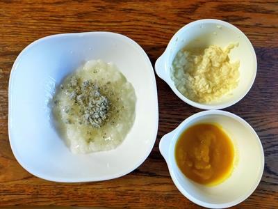 途中であまり食べてくれなくなったので、おかゆに混ぜ込みながら食べてもらいました。