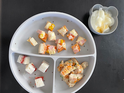 急にハイハイよりも歩く時間が増えたのでエネルギーを消費するのか、朝夜はしっかり量を食べられるようになったので、これに足りない時はバナナを足したりもしています。