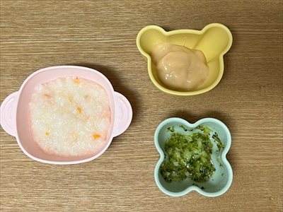 少しずつスプーンにのせて食べさせてみましたが、噛めてはいるものの、口から出してしまうこともありました。