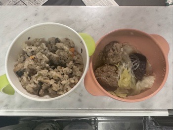 ③炊き上がったらすぐに混ぜてこども用は取り分け。