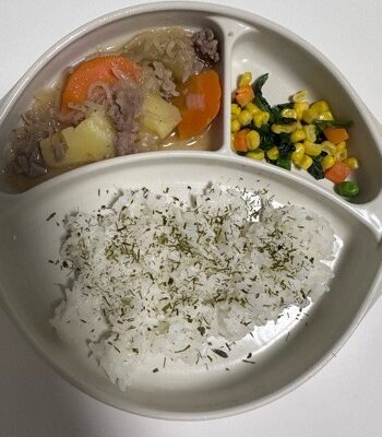 肉じゃがは大人の分からとり分けて食べられるように作ってみました。