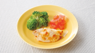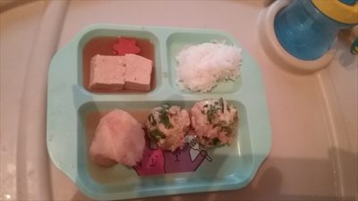 お豆腐、つくねなど、ニンジン、タラなどをよく冷まして、崩して食べさせました(お魚の骨には気をつけましょう)!