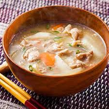 上記の材料をだしで煮て、材料が柔らかくなったら味噌を溶き入れる。