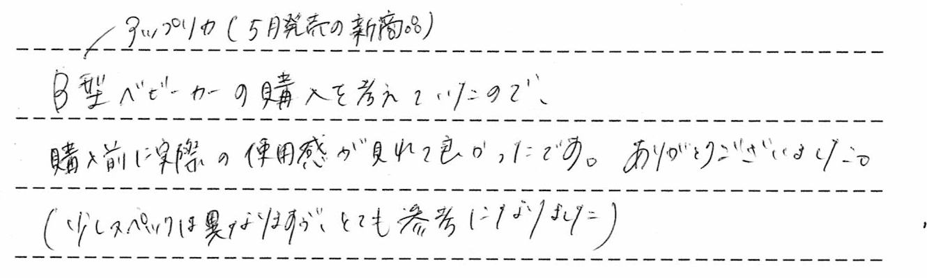 アップリカ(5月発売の新商品)B型ベビーカーの購入を考えていたので、購入前に実際の使用感が見れて良かったです。