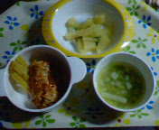 子どもたちは手づかみ食べでせっせと食べてくれました。