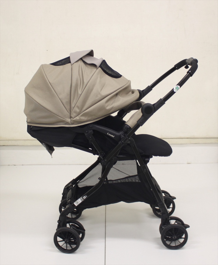 「スゴカルL compact エッグショック」は、軽量オート4キャスA型ベビーカー「スゴカル」シリーズにすっきり小さくたためる機能がついた最小モデルです。ベビーカーをたたんだ後、さらにハンドルとヘッドレストまでたためますので、高さわずか74cmと大変コンパクトになります。電車やバス、エレベーターでも場所を取らず、車内や玄関先でも収納しやすく便利です。また、本体シートの長さが従来品より19cmも長くなっていますので、お子様が大きくなっても広々使えます。お子様を乗せる時は広々、畳んだ時は軽量コンパクトと、街中でも扱いやすい便利なモデルとなっております。ぜひレンタルでお試しくださいませ。