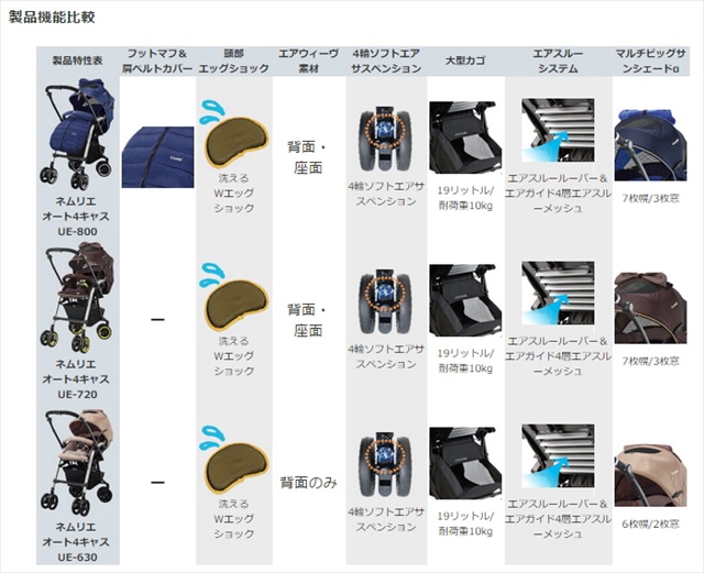 コンビの高機能ベビーカーの人気機種「ディアクラッセ オート4キャス」シリーズの後継機になります。赤ちゃんがベビーカーで気持ちよく眠れるような快適性、赤ちゃんを振動から守る装備、体温調節が苦手な赤ちゃんのための高い通気性がより追及されているモデルです。充実した装備の分、最近の軽量化モデルと比べるとやや重さがありますので、手軽さよりも安定性や快適性を重視したい低月齢のお子様におすすめしたいモデルです。