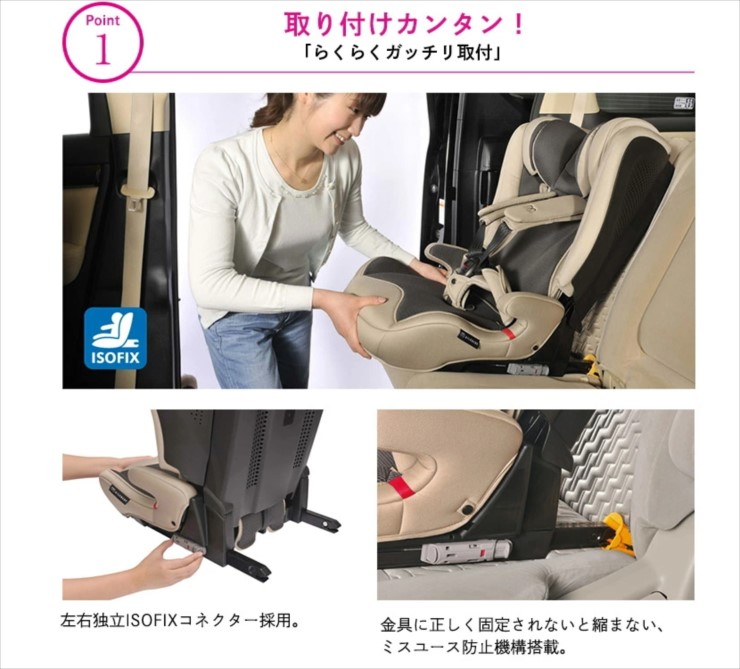 簡単確実なISOFIX取り付け方式ジュニアシート