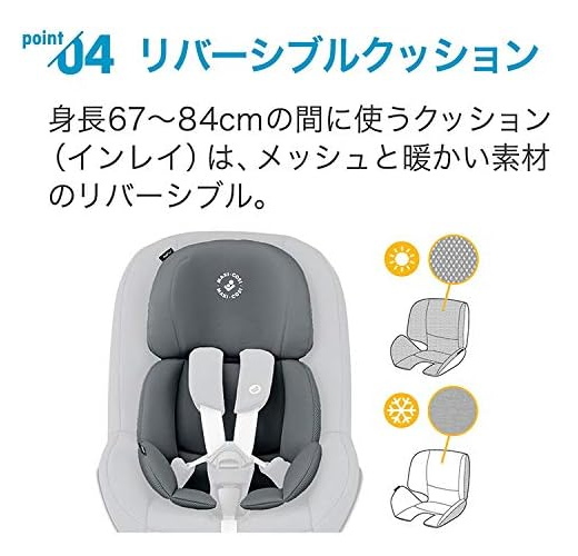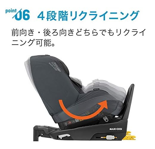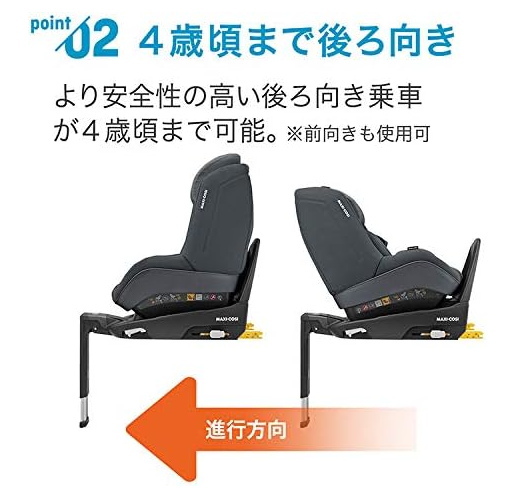 新安全基準R129に適合した、マキシコシのチャイルドシートとISOFIX取付専用ベースメントのセットです。こちらは生後6ヶ月頃から4歳頃まで使えるモデルのため新生児からは使用できません。安全性の高い後ろ向き取り付けで、4歳まで使用できます。