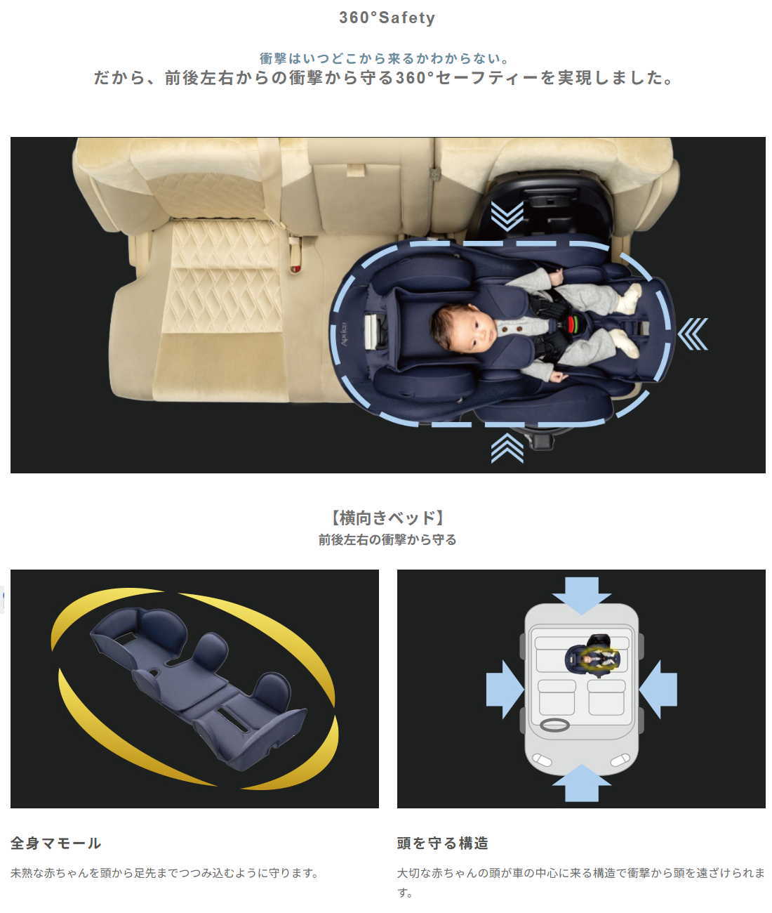 前後左右からの衝撃から守る360°セーフティー