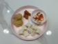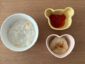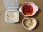 豆腐ハンバーグは、あまり好きではないようでなかなか食べ進められず、口から出したりもしていました。