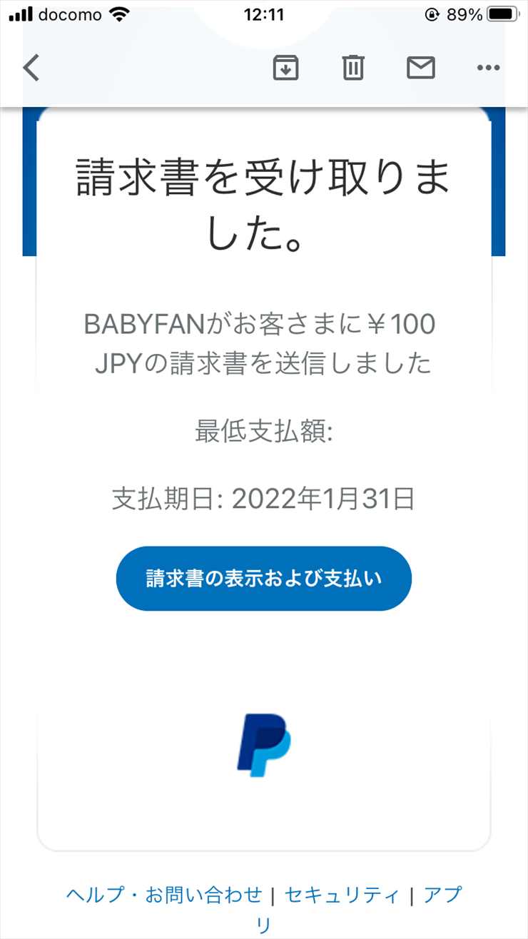 件名は、『BABYFAN(管理番号)からの請求書』になります。