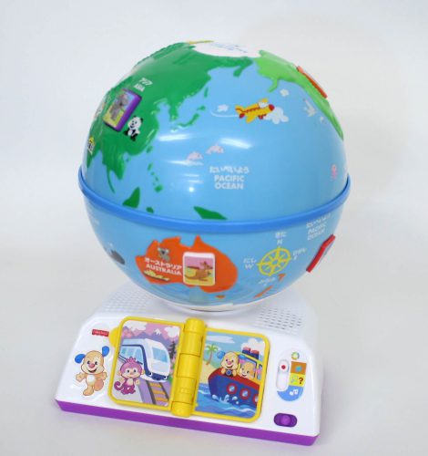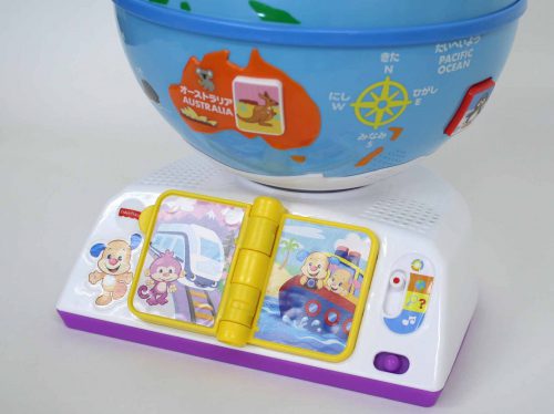 ベース部分のガイドブックをめくったり、地球儀のボタンを押すとせかいのあいさつや歌が始まります。