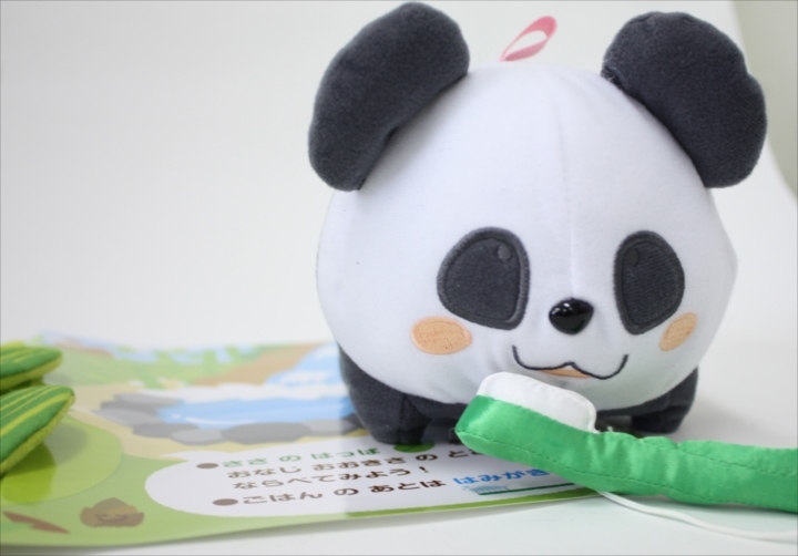 歯ブラシを使ってパンダの歯をぴかぴかにしてあげながら、お子様も歯磨きの習慣を学ぶことが出来ます。