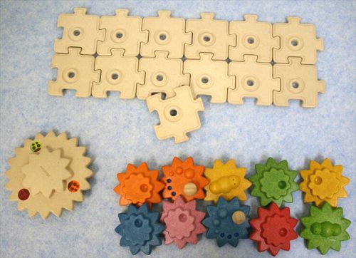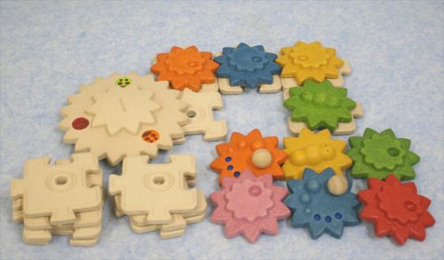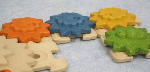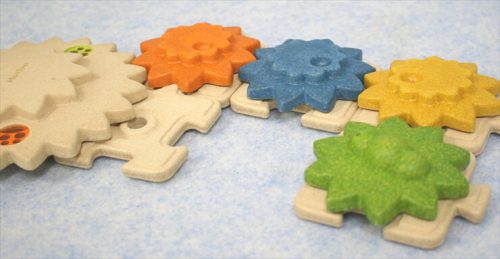 これは、かなり本格的な歯車玩具です。歯車の噛み合わせを考えながら、ベースをはめ込んでいく必要があります。